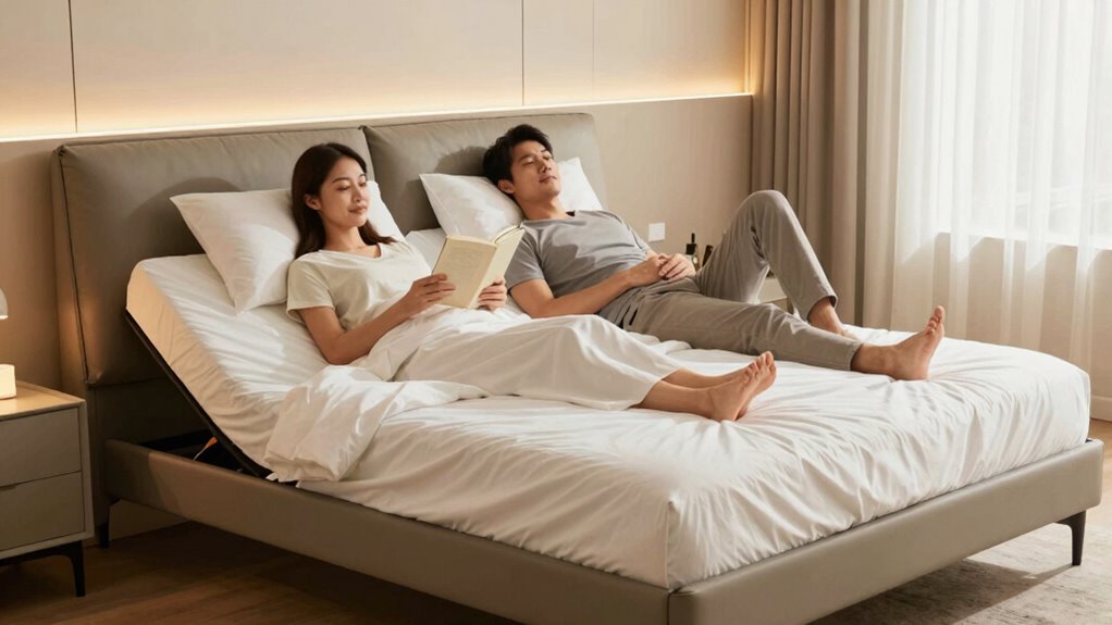 Getting a good night’s sleep can be challenging when you and your partner have different comfort needs or health concerns. That’s where adjustable beds truly shine. They give you and your partner the ability to customize your side of the bed, making it easier to find a comfortable position that promotes better sleep hygiene. When you’re both able to set your preferred elevation, it reduces tossing and turning, helping you fall asleep faster and stay asleep longer. This kind of personalized comfort can make a significant difference, especially if one of you suffers from sleep issues like acid reflux, snoring, or restless leg syndrome.