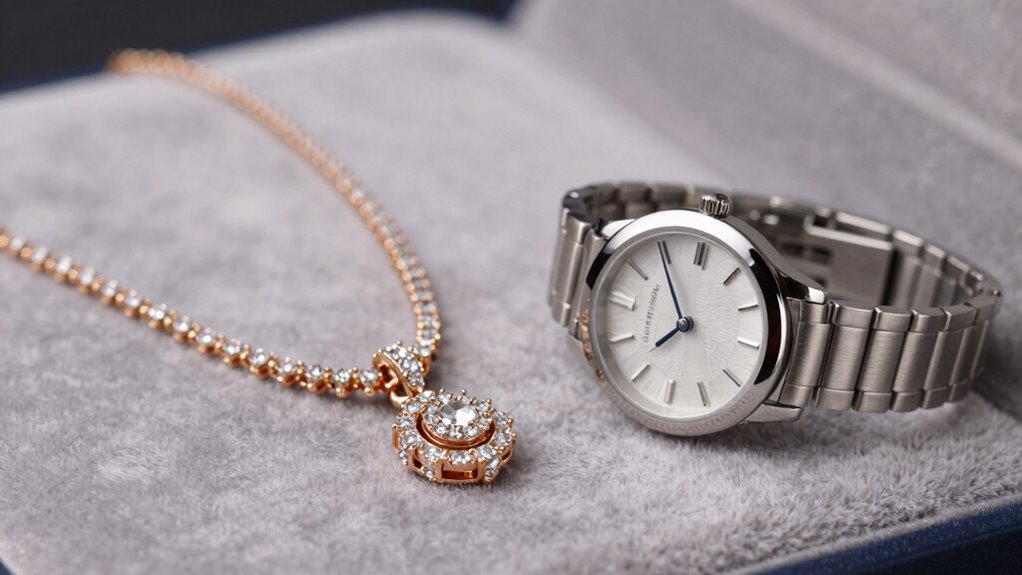 Celebrating an anniversary often calls for a meaningful gift, and choosing between jewelry and watches can be a tough decision. Both options carry their own significance and can beautifully symbolize your years together. When deciding, consider how each gift presentation aligns with your partner’s personality and your shared memories. Jewelry often makes a striking statement, especially when chosen with care, as it can be engraved or customized to enhance its sentimental value. A well-selected piece, like a necklace or bracelet, can be presented in a special box, adding to the overall experience of giving. The gift presentation amplifies the emotional impact, making the moment memorable. On the other hand, a watch offers a practical yet elegant gift that symbolizes time—your journey together. It can be engraved on the back, turning it into a keepsake that echoes your shared moments. The presentation of a watch can be equally impressive, perhaps wrapped in a sleek case or accompanied by a heartfelt note, emphasizing its significance beyond just telling time.