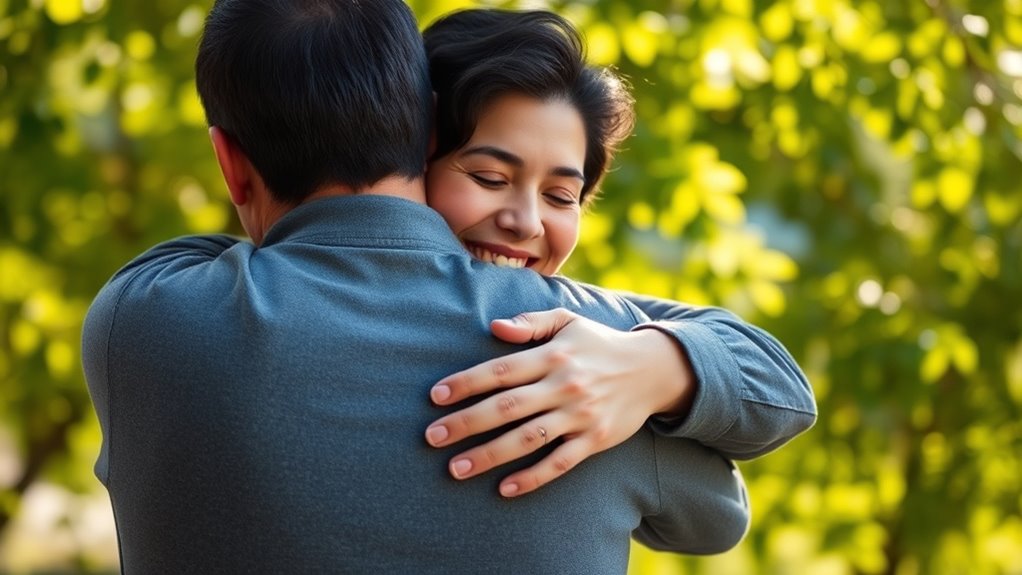 Hugs can have different effects based on age and relationship, emphasizing age-related benefits and relationship importance. When you hug loved ones, you strengthen bonds and boost emotional well-being, especially with close family or friends. For children and seniors, hugs may provide comfort and security, while for partners, they foster intimacy. Recognizing these differences helps you use hugs intentionally, enhancing your connections and emotional health across all stages of life.