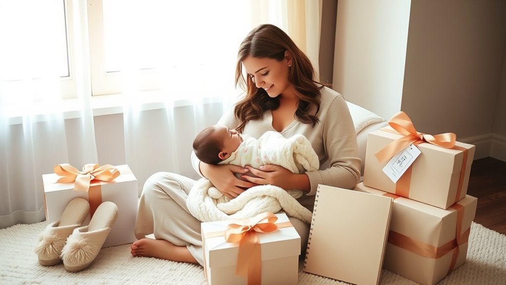 Did you know that over 70% of new moms say thoughtful gifts make their postpartum experience more joyful? Choosing something meaningful shows you’re there for her during this special time. Whether it’s a calming candle or a keepsake ornament, your gesture can brighten her day. So, pick a gift that celebrates her journey—she’ll cherish it long after 2025. After all, the right present makes all the difference in her new chapter.