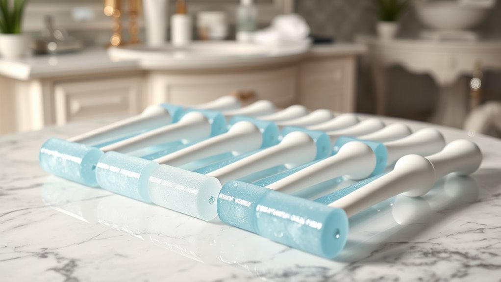 Opting for an ice roller that’s easy to clean can save you time and keep your skincare routine hygienic. Ice rollers with smooth, non-porous surfaces are ideal because they’re simple to wipe down and less likely to harbor bacteria. Reusable models made from silicone or stainless steel can be sanitized quickly with alcohol wipes, soap, and water, making maintenance a breeze. If the roller has detachable parts like removable covers or handles, cleaning becomes even easier. Choosing a design with minimal crevices or textured areas helps prevent dirt buildup, simplifying the process. Additionally, dishwasher-safe options or those that can be sterilized easily enhance hygiene and convenience. Overall, prioritizing ease of cleaning ensures your ice roller remains safe and effective for regular use.