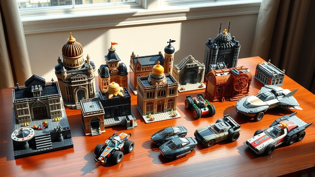 Selecting a LEGO set that matches your interests can make the building experience more enjoyable and meaningful. When choosing, consider themes that resonate with you, like architecture, cars, art, or nature, to boost engagement. Look for designs with intricate details and realistic proportions, which provide a satisfying challenge. Sets that include educational content or historical context add extra value, making the build both fun and informative. Ascertain the finished model can serve as a display piece or collectible, enhancing your space. Also, prioritize sets with advanced techniques or unique features, such as movable parts or digital instructions, for a more immersive experience. Finding a theme that sparks your passion will make every moment of building more rewarding and memorable.