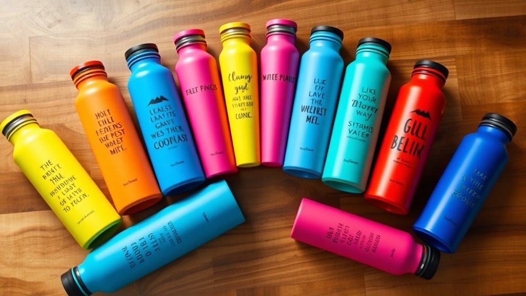 If you’re looking for the 15 best motivational water bottles with inspiring quotes, I’ve got you covered. These bottles feature eye-catching designs, practical sizes, and powerful quotes that keep you energized and on track with hydration. From durable stainless steel to sleek plastic options, each one offers unique features like time markers, easy-to-use lids, and customizable stickers. Stick around—to discover the top picks that will motivate you to drink more every day.