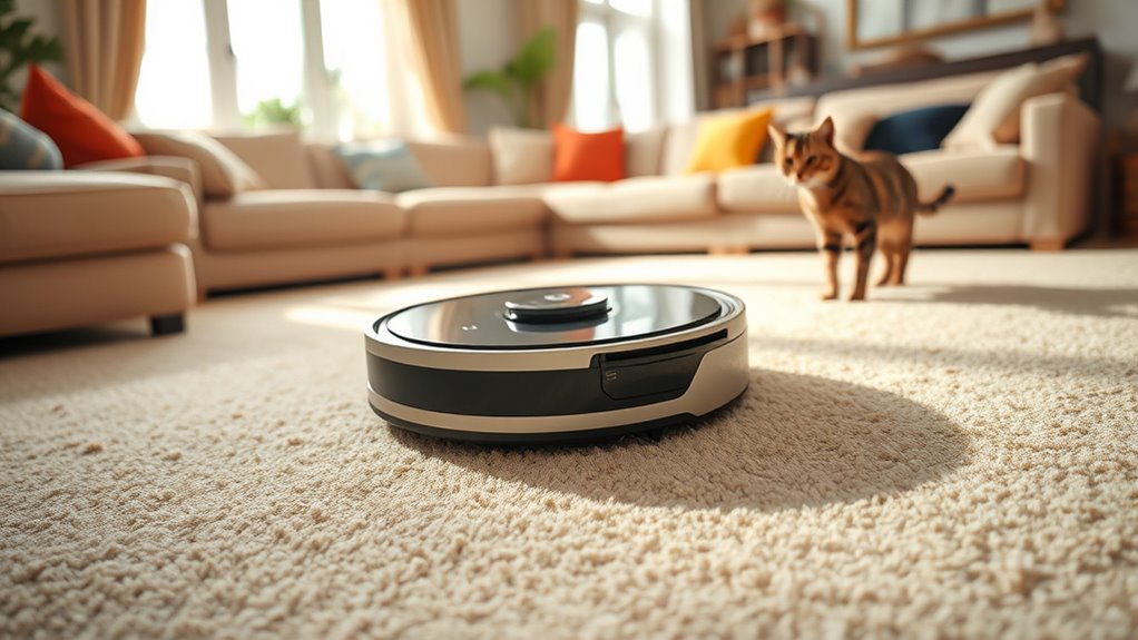 Robot vacuums can’t perfectly distinguish between pet hair and debris, but many are equipped with sensors that help them target dirt more effectively. I’ve noticed that higher-end models use smart navigation and camera systems to identify and focus on pet hair, making cleaning more efficient. While they might not be perfect, these features markedly improve their ability to pick up pet hair without wasting time on other debris.