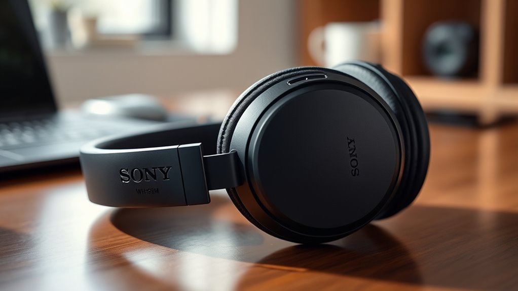 If you want immersive, high-quality sound from the WH-1000XM6, paying attention to its sound quality features is crucial. Look for headphones that support High-Resolution Audio for detailed, accurate playback that captures every nuance. An advanced processor like the HD Noise Canceling Processor QN3 not only improves noise reduction but also enhances sound clarity, making your listening experience more refined. Customizable equalizer settings allow me to tailor the sound to my preferences, while collaboration with mastering engineers ensures professional-grade sound quality. Lightweight, balanced drivers such as carbon fiber dome drivers deliver crisp vocals and instrument separation. Additionally, support for wireless codecs like LDAC ensures rich, high-fidelity sound over Bluetooth, making every listening session truly immersive.
