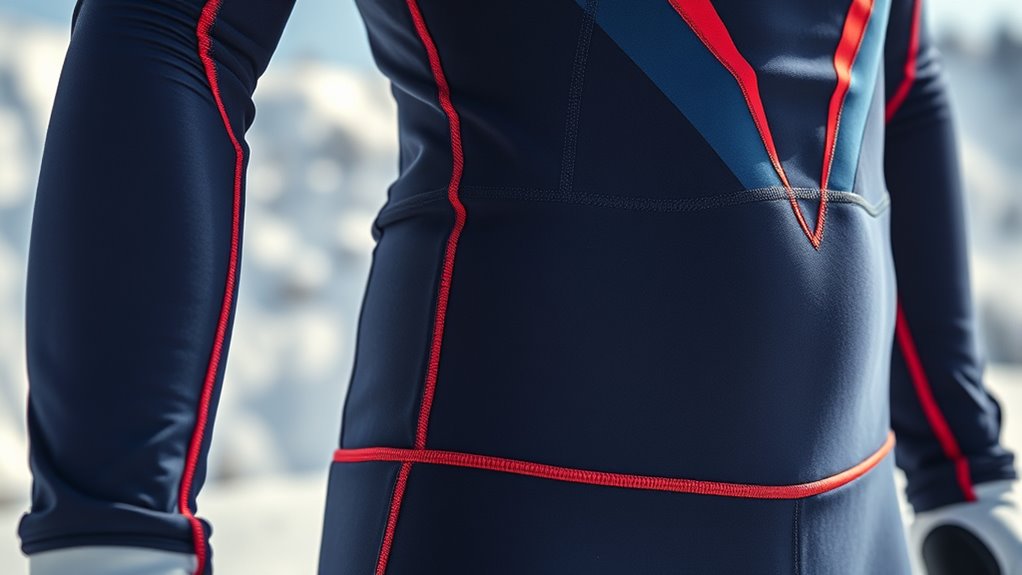 To guarantee your thermal underwear works well with outer ski wear, it’s essential that it fits smoothly without adding bulk or restricting movement. A close, slim fit ensures your outer layers slide easily over your base layer, preventing discomfort or bunching. Opt for moisture-wicking and breathable fabrics to keep sweat away from your skin and outer layers, maintaining dryness and warmth. Seamless or flatlock seams are a must—they prevent chafing and avoid visible lines that can interfere with how your jacket and pants fit over the base layer. Additionally, check that the material and cut of your thermal underwear complement your outer gear’s insulation and waterproof features. Proper compatibility helps you stay comfortable, agile, and dry all day on the slopes.