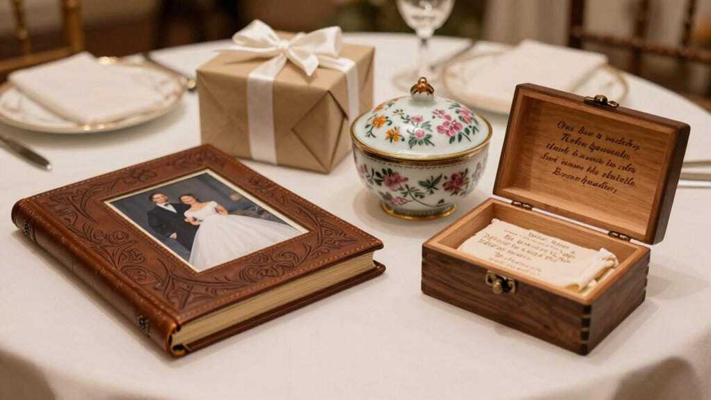 To choose a truly special wedding gift, start by checking if the couple has a gift registry to guarantee your gift is needed and appreciated. Add a personal touch with engraved or customized items to make it memorable. Consider your relationship with the couple when selecting something personal or luxurious if you’re close, or opt for a thoughtful registry gift if you’re more distant. Pay attention to timing and presentation, and focus on meaningful choices that reflect their interests. Keep these tips in mind, and you’ll find the perfect gift that feels genuine and memorable.