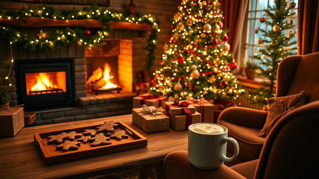 To make Christmas Eve truly special, consider cozy traditions like gift wrapping together with colorful ribbons and personal touches, turning a chore into a festive activity. Baking holiday treats with your loved ones fills the house with joyful scents and creates lasting memories. Combining these activities encourages relaxation, connection, and a warm, magical atmosphere. Keep exploring ways to craft meaningful moments, and you’ll find even more ideas to make the night before unforgettable.