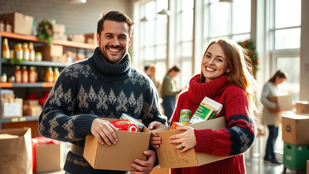 Volunteering together during the holidays can strengthen your bond by creating shared experiences and fostering teamwork. As you work side by side on community projects, you build trust, improve communication, and deepen mutual understanding. Giving back also exposes you to new perspectives, increasing empathy and emotional connection. Plus, engaging in fun activities outside your routine helps you reconnect and enjoy each other’s company. To discover more ways this can enrich your relationship, keep exploring these meaningful moments together.