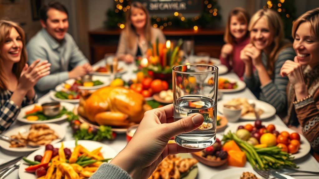 Yes, you can enjoy low calorie drinks like vodka or gin with soda water and a splash of lime, which keeps calories in check. Opt for wine or light beer for fewer calories. Remember, alcohol moderation is key—limit your drinks to prevent overconsumption. By choosing these low calorie drinks and practicing alcohol moderation, you can savor holiday festivities without compromising your health goals.