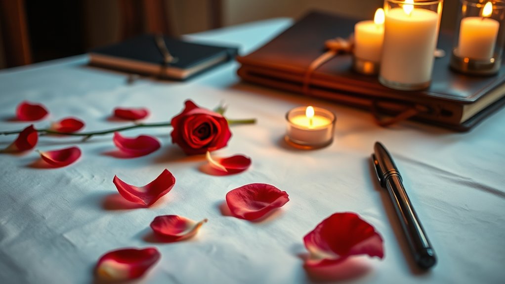 You can incorporate personal touches into your Valentine’s Day by giving thoughtful personal gifts that reflect your partner’s interests and passions. Add meaningful gestures like writing heartfelt notes or planning activities you both love. Small details, such as customizing a playlist or preparing their favorite meal, make the celebration special. These personal touches show your love and effort, making the day memorable and uniquely yours.
