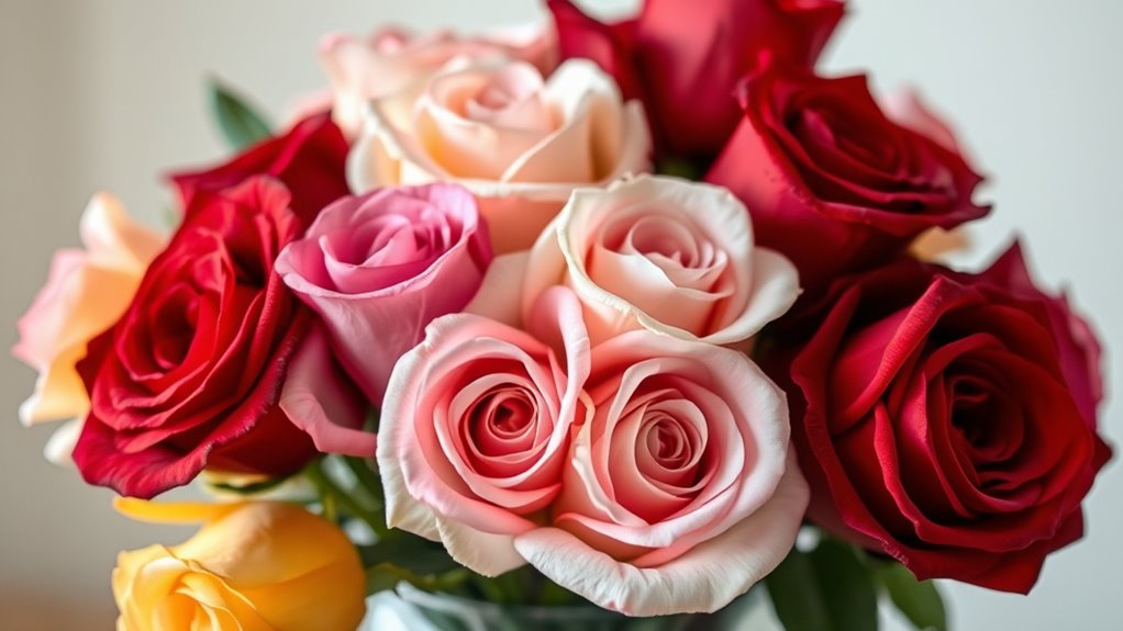 Now that you know what each rose color whispers, your next bouquet becomes a secret message waiting to be uncovered. Think of roses as a language more powerful than words—each petal a syllable of your feelings. So, when you pick that perfect hue, you’re not just giving a flower; you’re planting a thousand unspoken words in someone’s heart. Let your roses do the talking, and watch love blossom like never before.