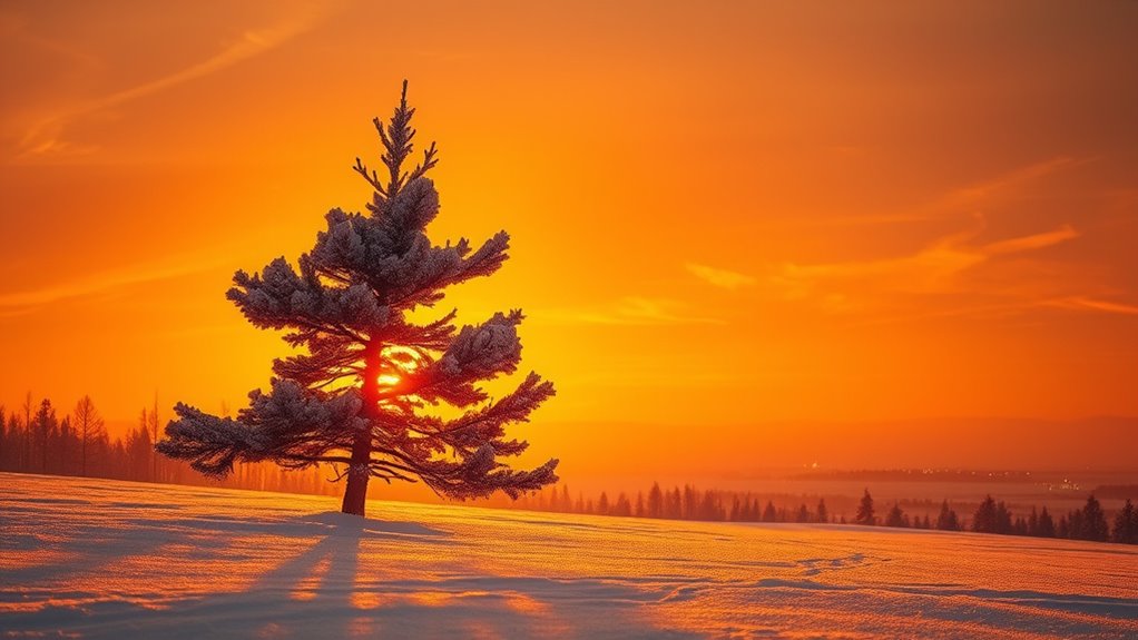 You’ll find that winter solstice celebrations are like a tapestry woven with ancient rituals and cultural symbolism worldwide. In China, families light lanterns to chase away darkness, symbolizing hope and renewal. In Scandinavia, bonfires honor the returning sun, while in Mexico, candles and altars celebrate light’s victory. These traditions serve as a reminder that, despite the cold darkness, the promise of light and warmth endures across cultures.